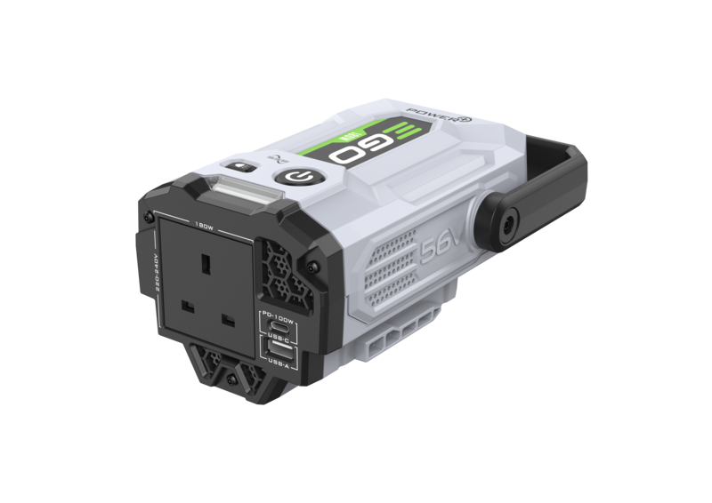 Het 180W wisselstroomstopcontact en 2 USB-poorten van de EGO Power+ Nexus Escape 220-240V omvormer stelt je in staat om uw gereedschap te laden of van stroom te voorzien waar je ook bent.